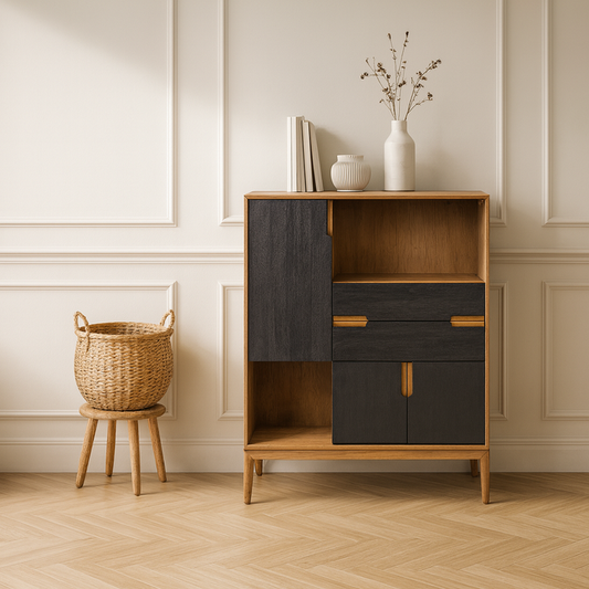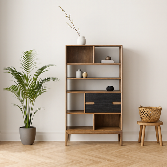 Gio Acacia Wood 2 Drawer 7 Niche Display Cabinet