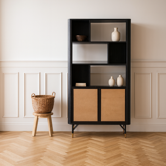 Fiji Black Acacia Wood 2 Door 6 Niche Display Cabinet