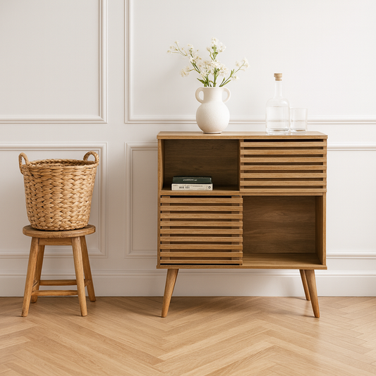 Larvik Natural Eucalyptus Wood 2 Door 2 Shelf Unit