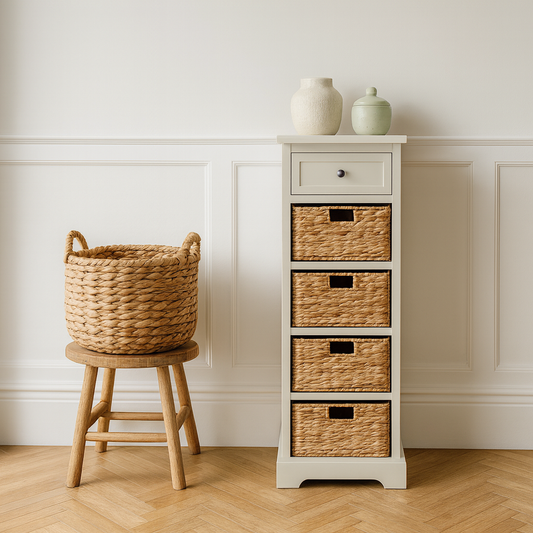 Devonshire Pine Wood 1 Drawer 4 Basket Tall Unit