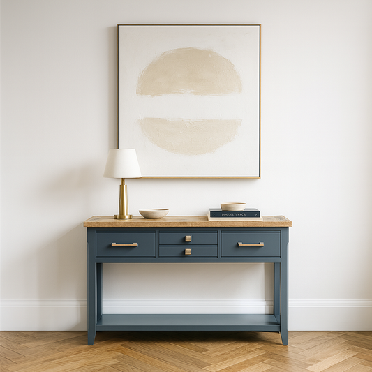 Signature Blue Oak Top Console Table