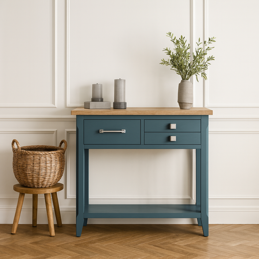 Signature Blue Oak Top Small Console Table
