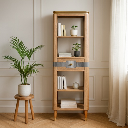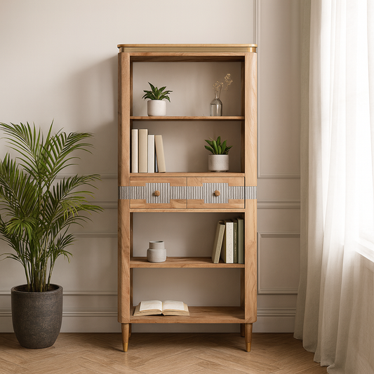 Hawksy Acacia Wood 2 Drawers Open Bookcase