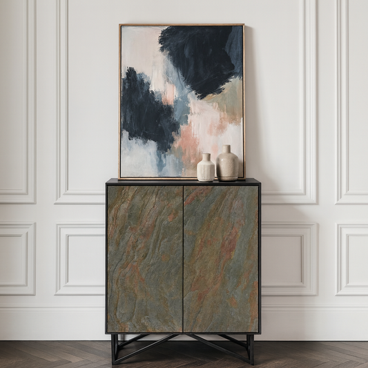 Verde Black Mango Wood and Stone Veneer Sideboard