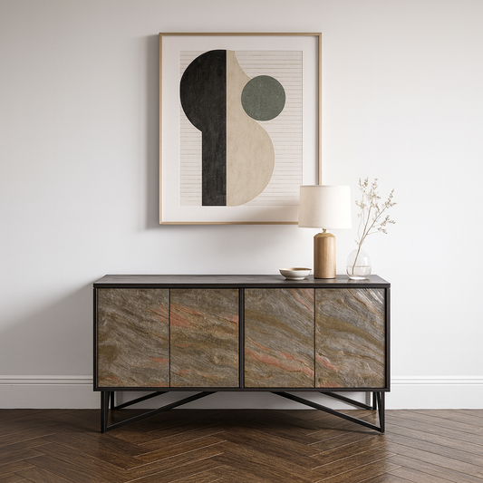 Verde Black Mango Wood and Stone Veneer 4 door Sideboard