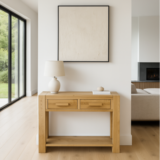Trend Console Table – Sleek Solid Oak Design with Versatile Storage & Contemporary Appeal