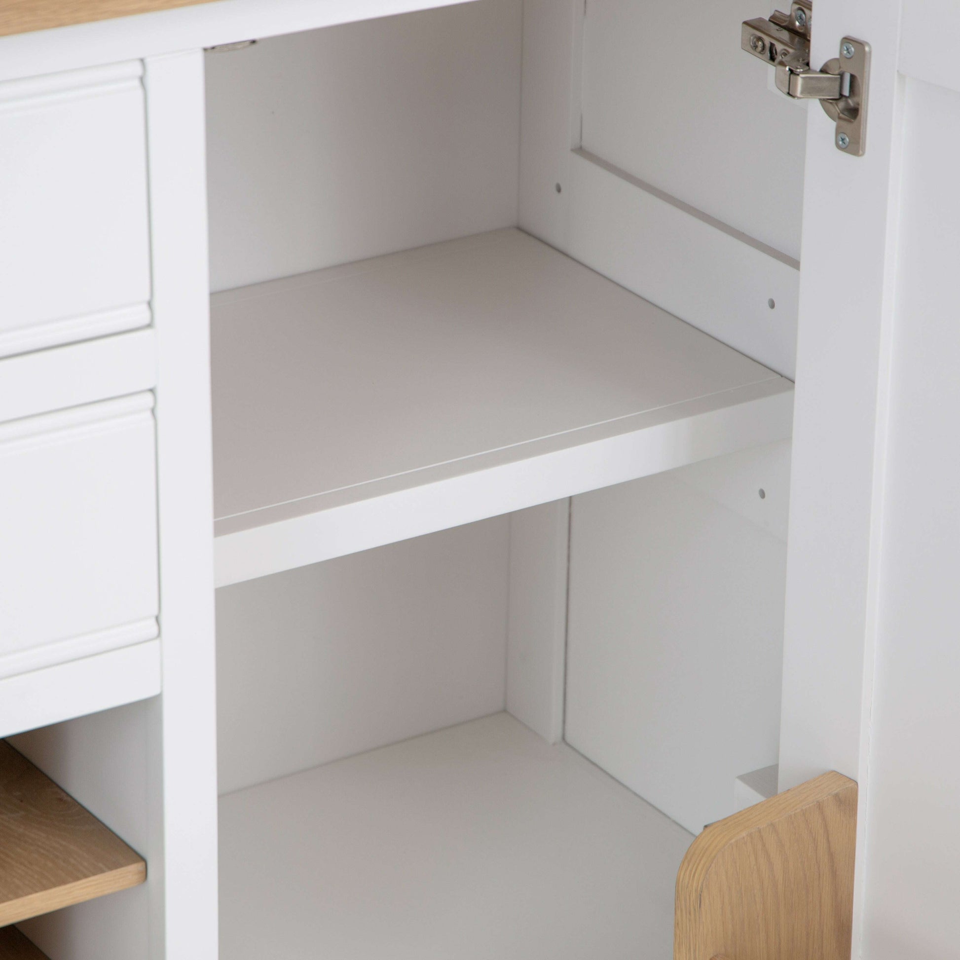 The Chesterfield Oak Large Sideboard brings together classic farmhouse style and smart storage for a beautifully balanced piece. Its chunky oak top is finished in Danish oil to resist moisture and highlight the natural grain, while the painted base adds a soft, contemporary contrast.