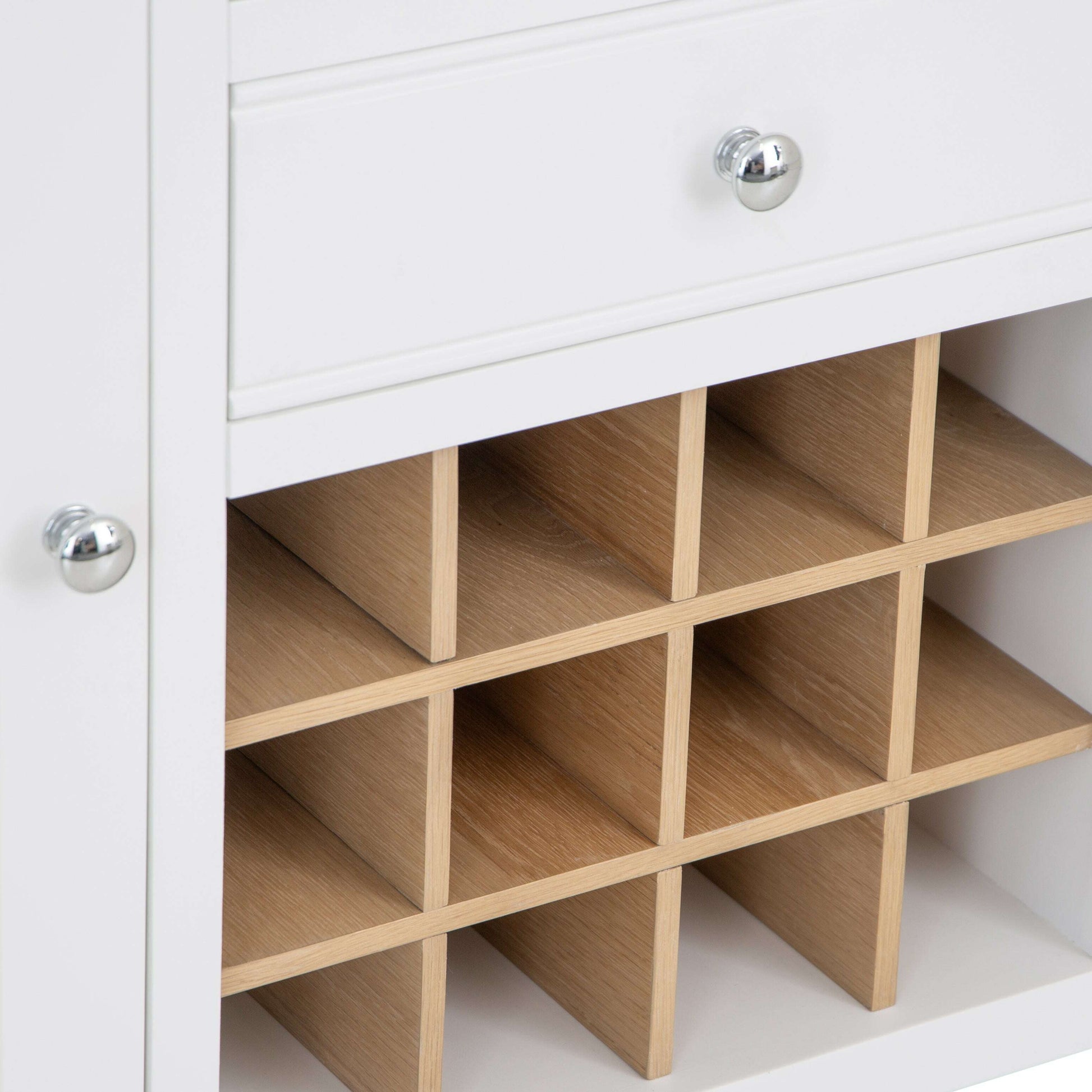 Featuring two drawers, two cupboards, and a 12-bottle wine rack, it offers plenty of space to keep your kitchen or dining room organised. Soft-close doors and drawers complete the design with a smooth, refined finish.