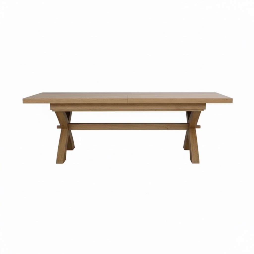 Whether styled in a rustic, industrial, or modern interior, the Deluxe X-Leg Extendable Oak Dining Table brings grandeur, warmth, and timeless sophistication to your dining space. Its practical design and elegant detailing make it a standout addition to any home.