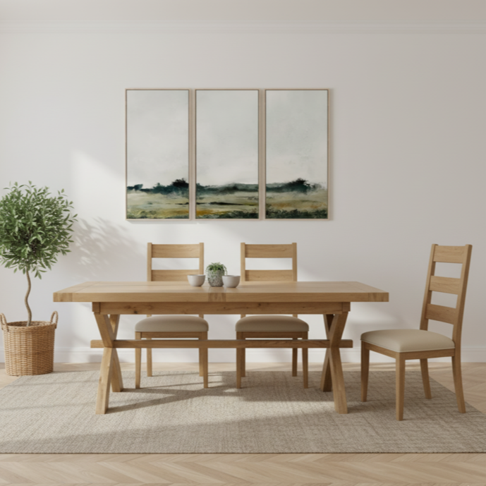 The Deluxe X-Leg Extendable Oak Dining Table is a bold and beautiful centrepiece, combining contemporary flair with timeless craftsmanship. Made from high-quality oak with engineered oak centre panels, it features a durable finish and solid X-leg supports for added strength and style.