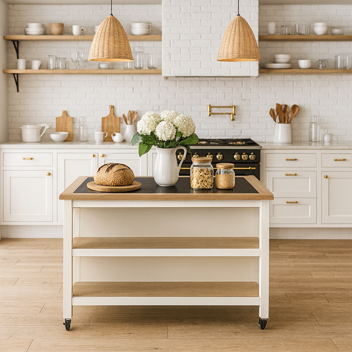 The Savannah Cream Open Kitchen Island with Granite Top brings gentle charm and everyday functionality to your kitchen. Its soft cream finish and sleek granite surface offer timeless appeal, perfect for both classic and contemporary spaces.