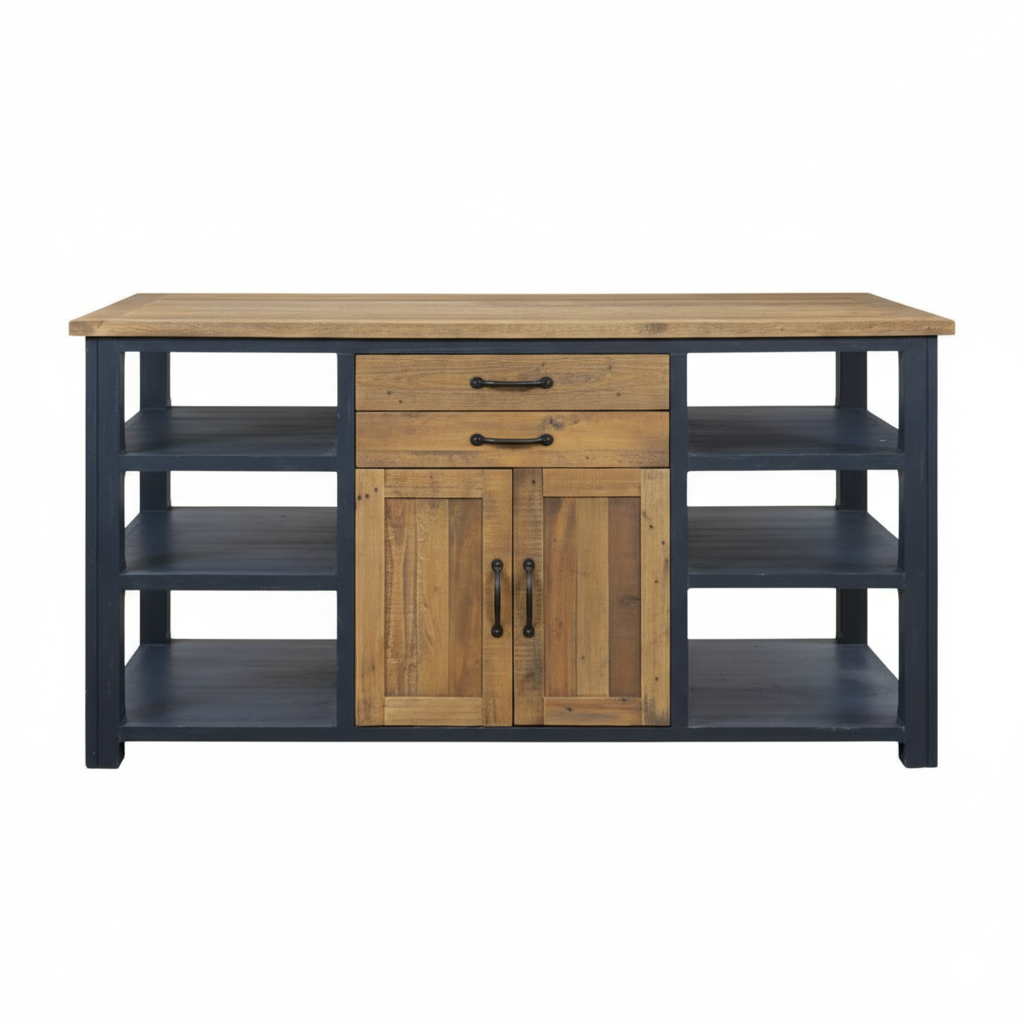 Bring both style and functionality to your kitchen with the Splash of Blue Kitchen Island with Reclaimed Wood. Ideal for meal prep, storage, and socialising, this island combines a durable reclaimed wood worktop with a striking blue finish to create a sophisticated and inviting focal point in your home.