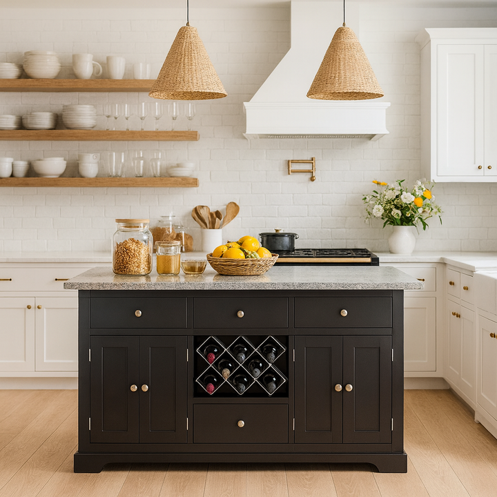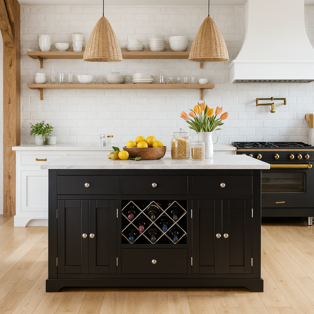 Bring a touch of elegance and practicality to your kitchen with the Windham Black Painted Large Kitchen Island. This stunning piece of furniture is designed to meet the needs of modern households while elevating the look and feel of your space.