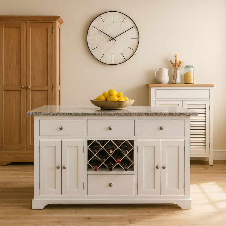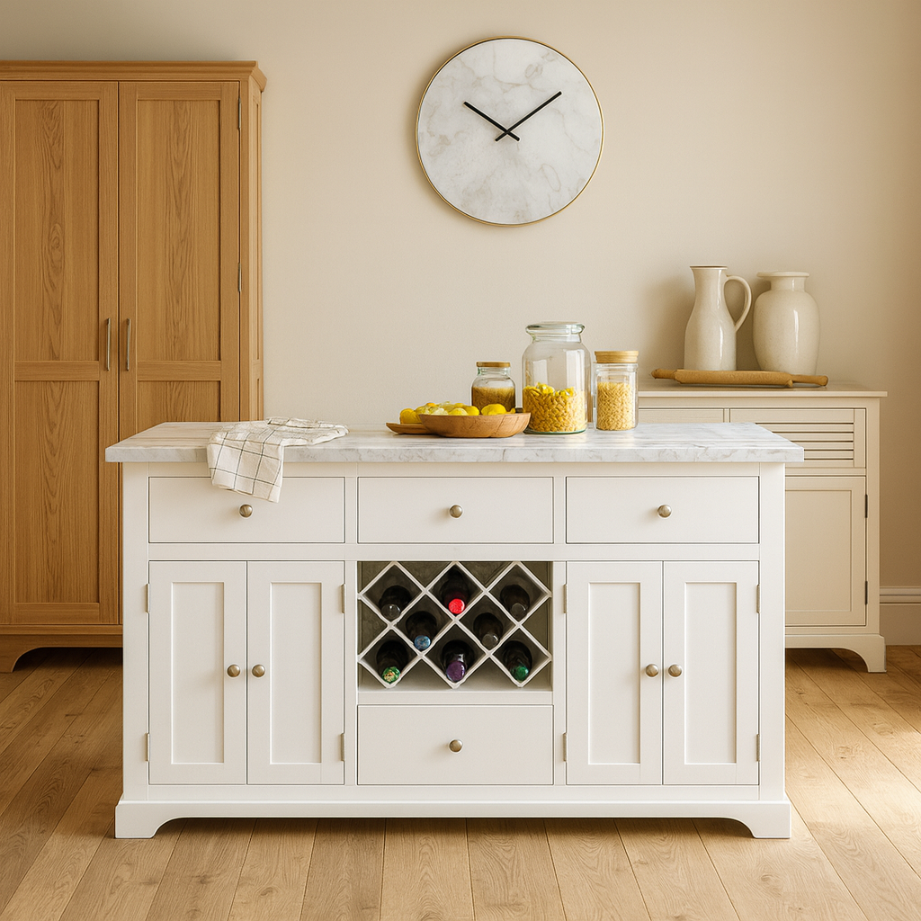 The Windham White Painted Large Kitchen Island brings classic elegance and practical design into perfect harmony. Finished in a timeless white, this island offers a customisable layout with a choice of worktops to suit your style. Whether used for meal prep, casual breakfasts, or entertaining, it’s a beautifully functional centrepiece for any kitchen.