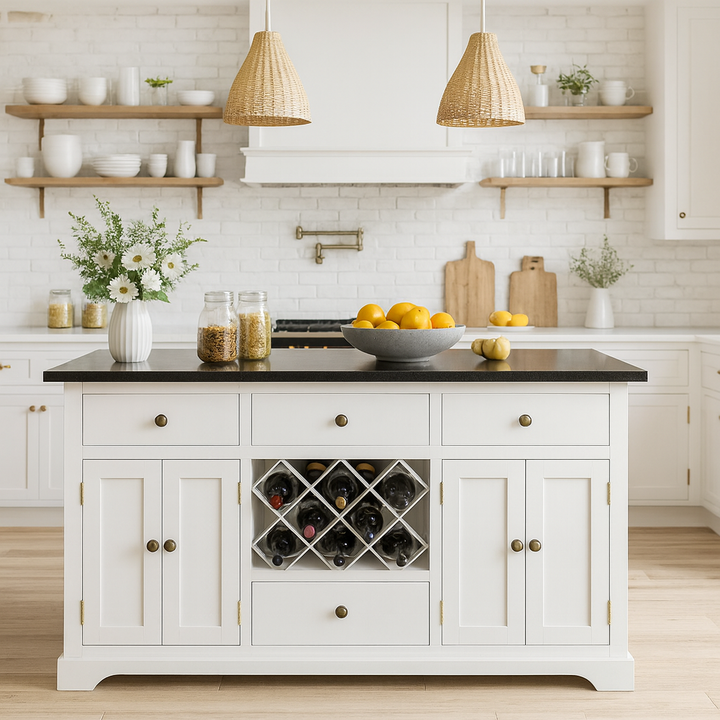 Windham White Painted Large Kitchen Island | Refined Storage with Flexible Style