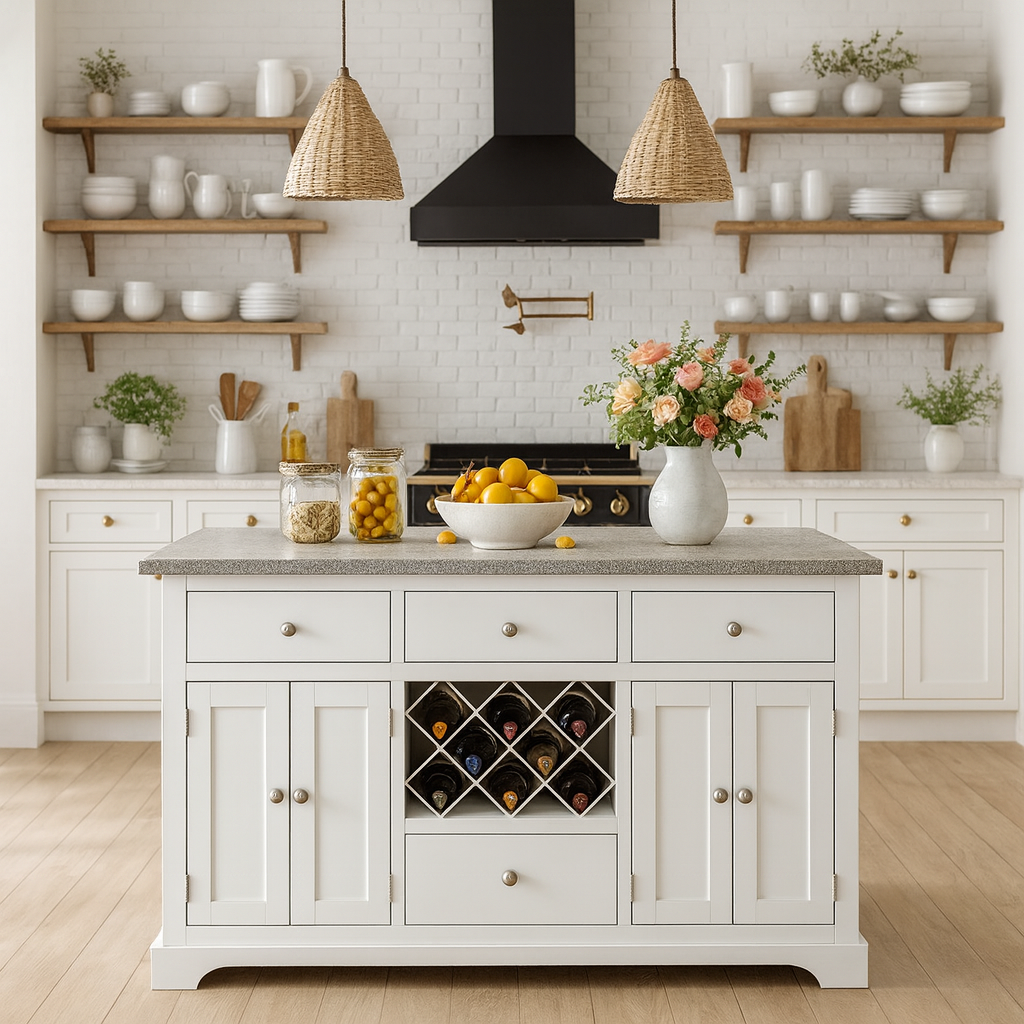 Transform your kitchen today with the Windham White Painted Large Kitchen Island, a piece that seamlessly blends beauty and utility for the heart of your home.
