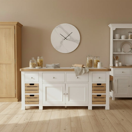 Discover and buy from our collection of high-quality kitchen islands, crafted from durable materials such as solid oak, reclaimed wood, and stylish painted finishes. Whether you're looking for an island with ample storage or one that serves as a statement piece, our islands are designed to bring both beauty and practicality to your kitchen.