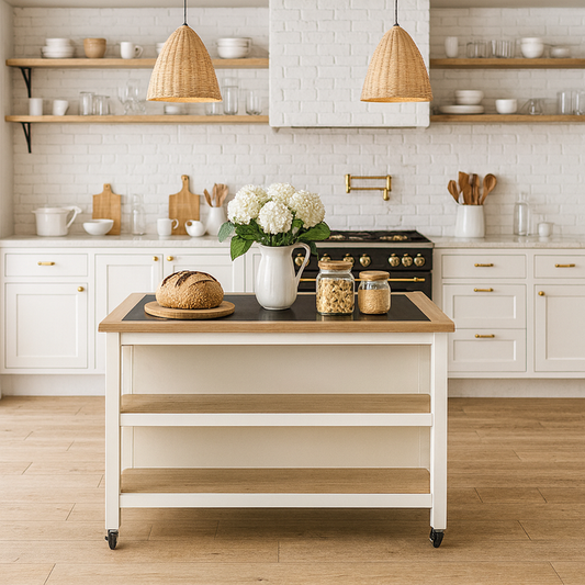Our freestanding kitchen islands are crafted to blend seamlessly with your space, combining elegance with practicality. Whether you're looking for added storage, convenient food prep space, or a gathering area for family and friends, our islands provide the perfect solution. Choose from a variety of finishes, including solid oak, reclaimed wood, and painted options, each designed to complement any kitchen aesthetic.