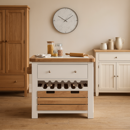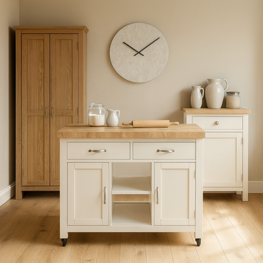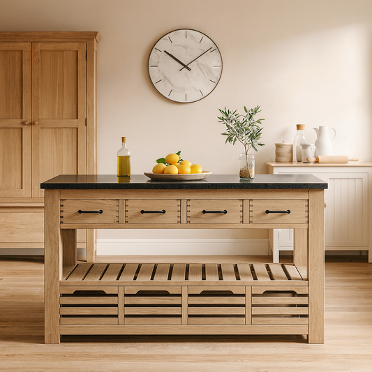 Discover and buy from our collection of high-quality kitchen islands, crafted from durable materials such as solid oak, reclaimed wood, and stylish painted finishes. Whether you're looking for an island with ample storage or one that serves as a statement piece, our islands are designed to bring both beauty and practicality to your kitchen.