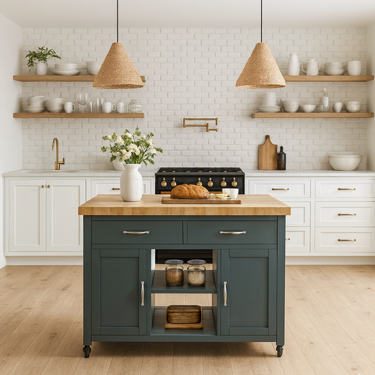 Our freestanding kitchen islands are crafted to blend seamlessly with your space, combining elegance with practicality. Whether you're looking for added storage, convenient food prep space, or a gathering area for family and friends, our islands provide the perfect solution. Choose from a variety of finishes, including solid oak, reclaimed wood, and painted options, each designed to complement any kitchen aesthetic.