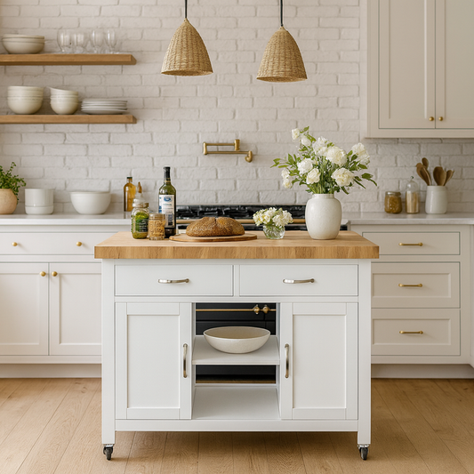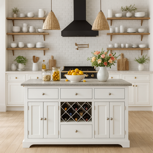 Our kitchen islands are designed to do more than just look good – they provide valuable storage space to keep your kitchen organised. Choose an island with spacious drawers, open shelving, and additional cabinets for easy access to your kitchen essentials. Whether you're storing pots and pans or using it as a prep station, our islands combine storage with style for a more organised kitchen.