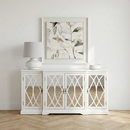 Nocturne White Breakfront Sideboard with Mirror Front