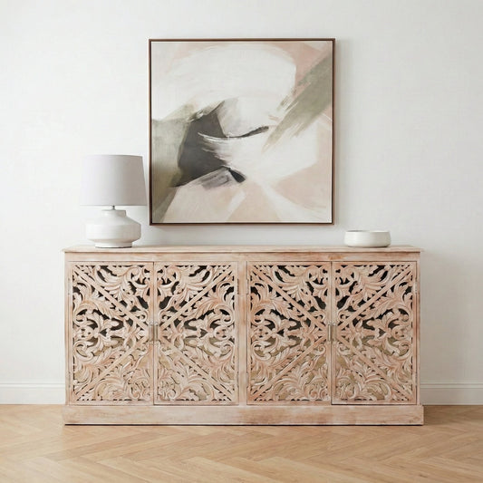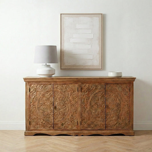 Solmere Ornate Carved Mango Wood Sideboard with Mirror Doors