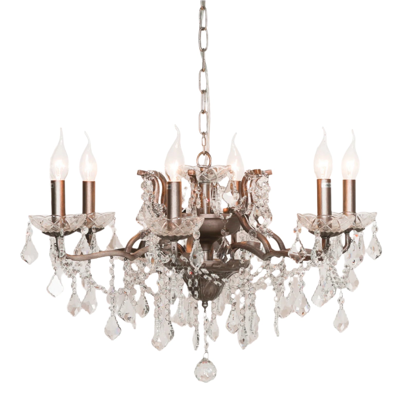 Elbright 6-Branch Antique Shallow Cut Glass Chandelier | French-Inspired Elegance