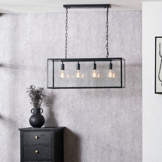 Llewellyn Matte Black Metal and Glass 4 Bulb Pendant