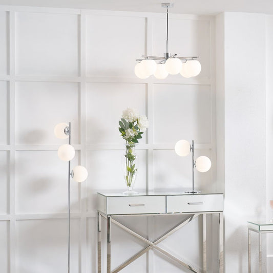 Asterope 6 White Orb and Shiny Chrome Metal Pendant