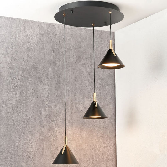 Astarion Matte Black and Gold 3 Drop LED Pendant