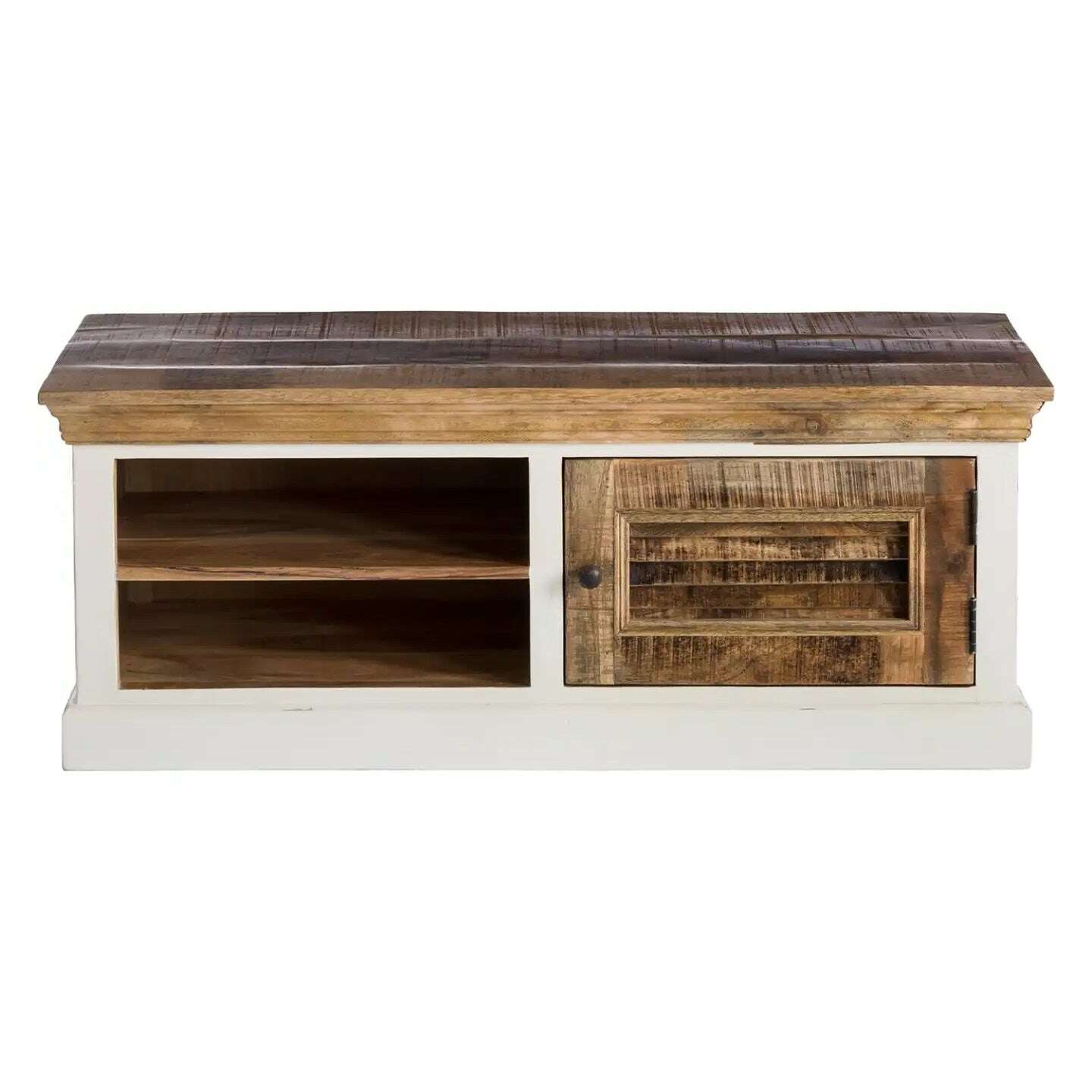 Alfie Wood Shoe Rack & Hanger Wall Hook Set – Solid Mango Wood & Rustic Whitewash Finish