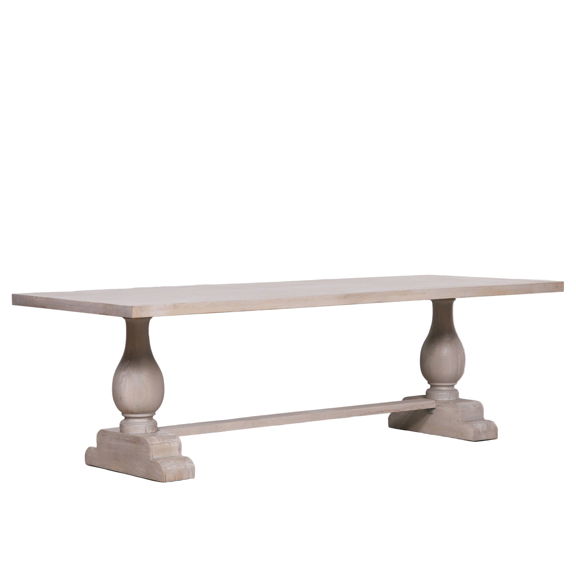 Blanche Dining Table | 2.6m Bleached Mango Wood | Carved Pedestal Base | Rustic Elegance