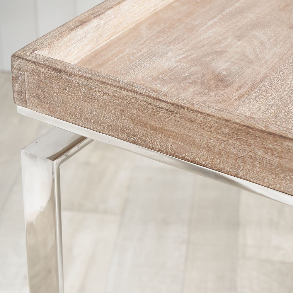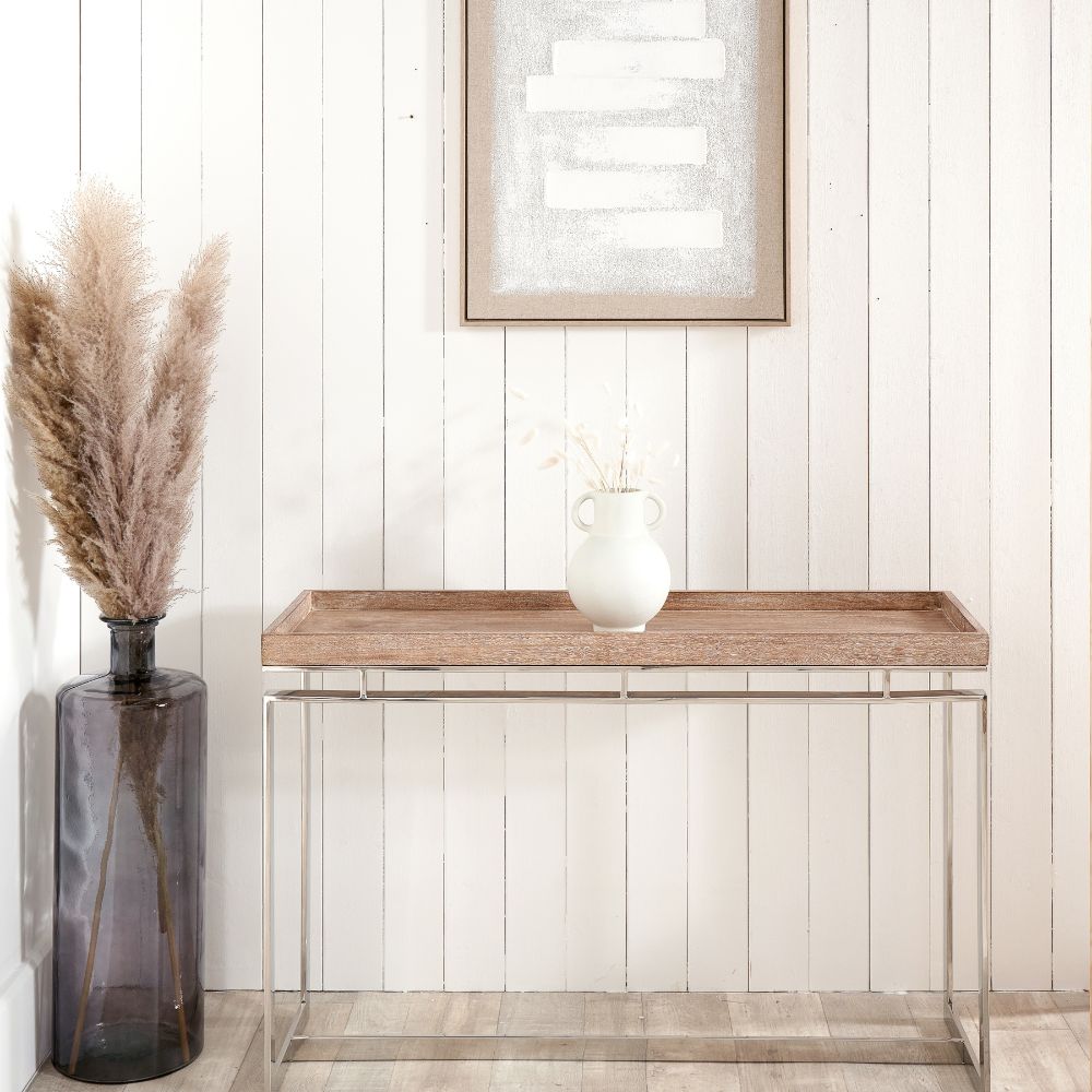 Evelyn Console Table | Warm Mango Wood with Polished Silver Contrast