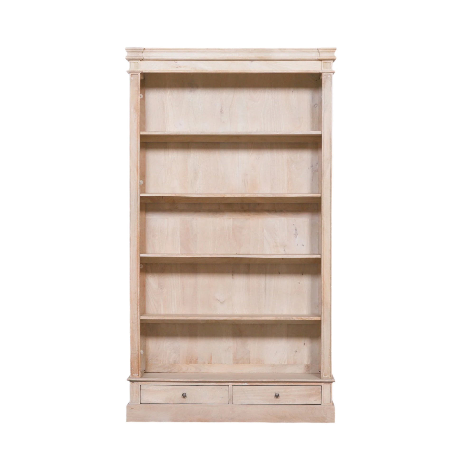 Add rustic charm and practical elegance with the Mango Wood Blanche Bookcase. Crafted from bleached mango wood, it features open shelving for books or décor, plus two lower drawers for hidden storage.