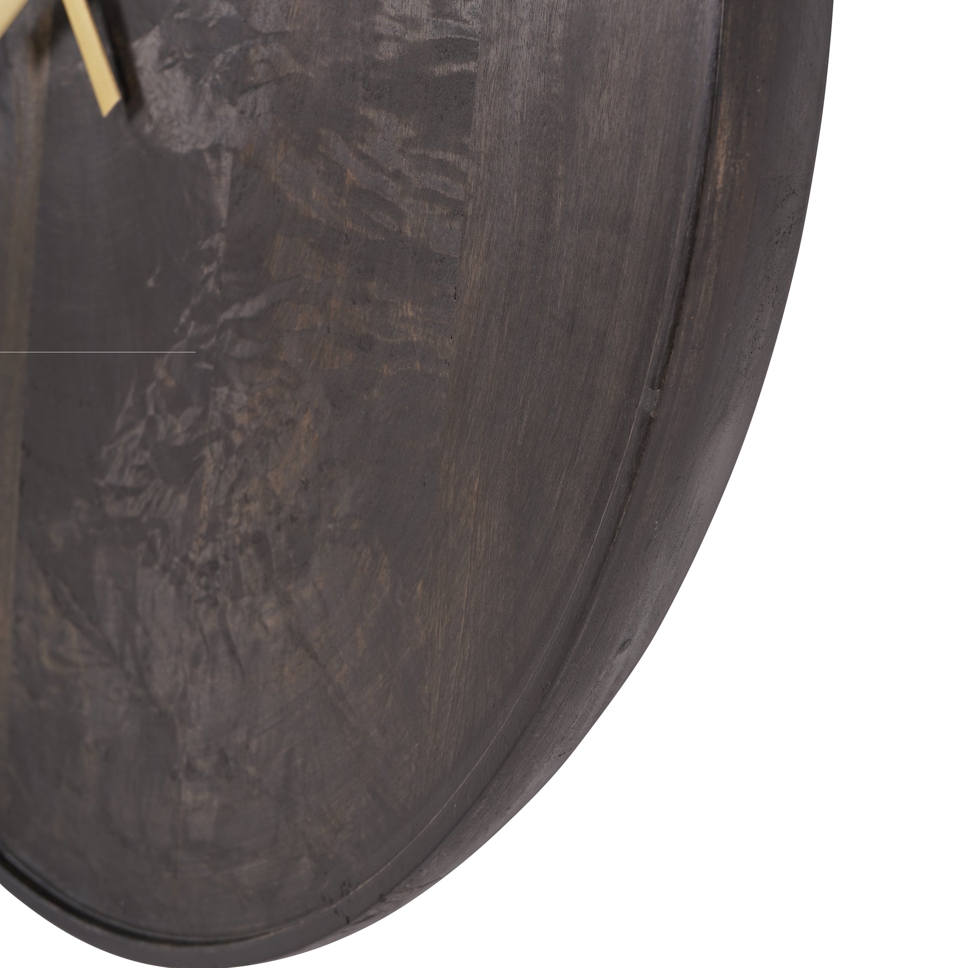 Introduce natural depth and refined contrast with the Mango Wood Bowl Small Wall Clock. Crafted from solid 100% mango wood, its gently curved bowl shape is finished in a rich black smoked tone, highlighting the natural grain beneath. Sleek antique brass hands offer a warm metallic accent that elevates the minimalist design.