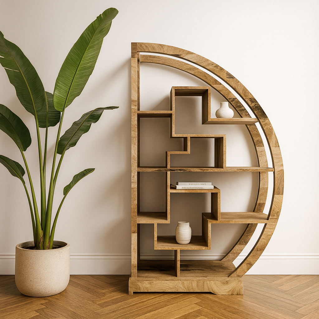 Rumi Arch Display Unit | Solid Mango Wood Half-Round Shelf