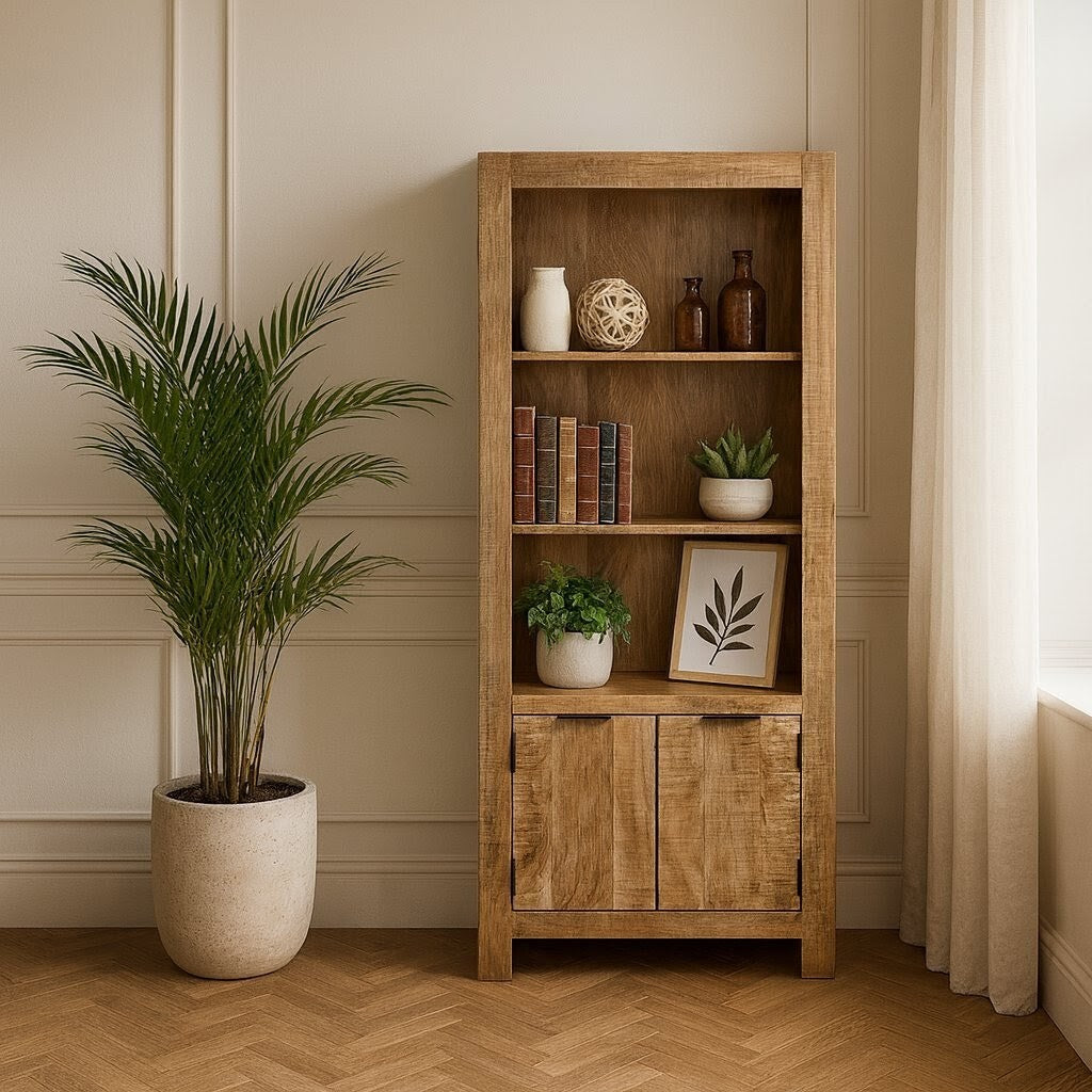 Surrey Solid Wood Bookcase – Handcrafted Mango Wood with Rustic Finish