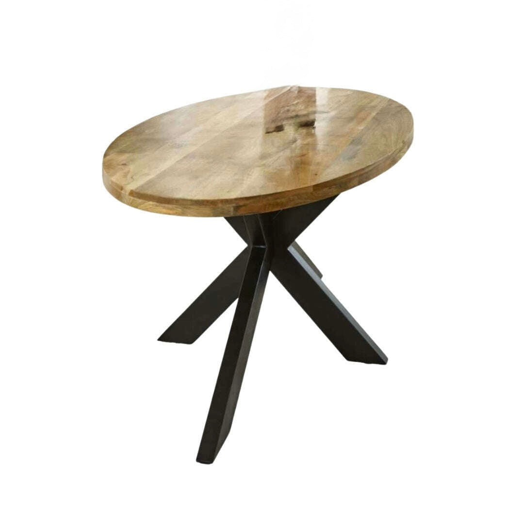 The Surrey Solid Wood & Metal Oval Dining Table is a striking fusion of rustic warmth and industrial flair. Featuring a beautifully grained solid mango wood top with a smooth lacquered finish, it showcases natural character while offering lasting durability.