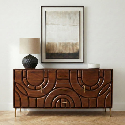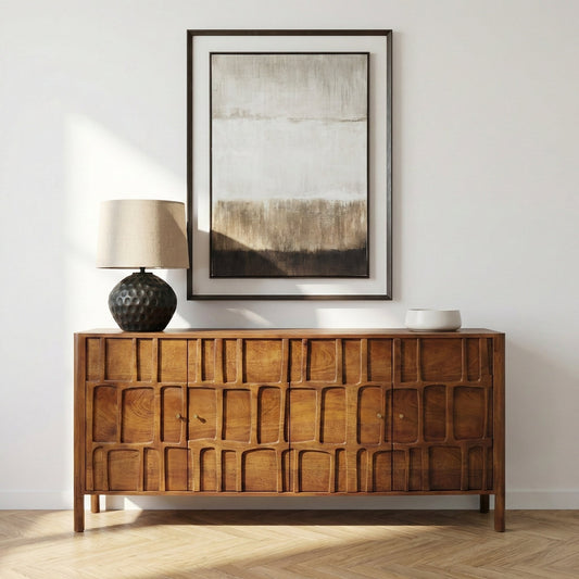 Aranya Solid Wood 4 Door Carved Detail Sideboard