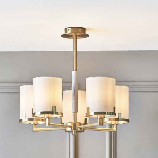 Midland Champagne Gold Metal Marble Effect 5 Arm Pendant