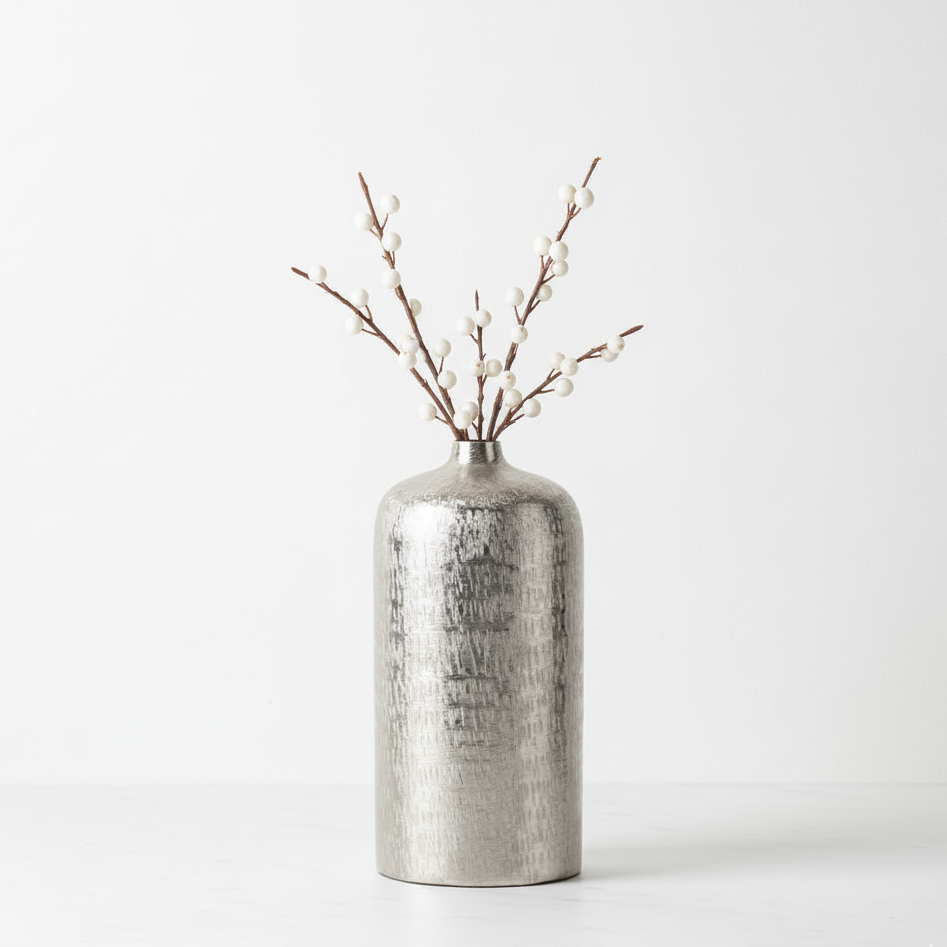 Ideal for those who appreciate metallic finishes, handcrafted texture, and timeless design, this hammered metal vase is a standout accessory. It’s a beautiful way to introduce shimmer, structure, and global craftsmanship to your interior. Add refinement and elegance with this sculptural metallic essential.