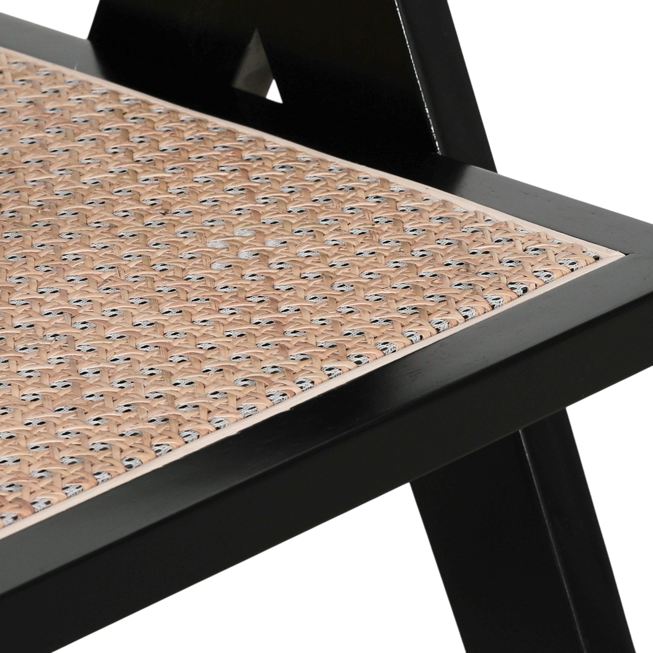 Its minimalist frame gives the chair a light, sculptural presence while ensuring durability and everyday function. The contrast between the black wood and natural rattan provides a grounded, organic feel that suits both modern and traditional interiors. Whether placed around a dining table or styled as occasional seating, it makes a stylish, versatile statement.
