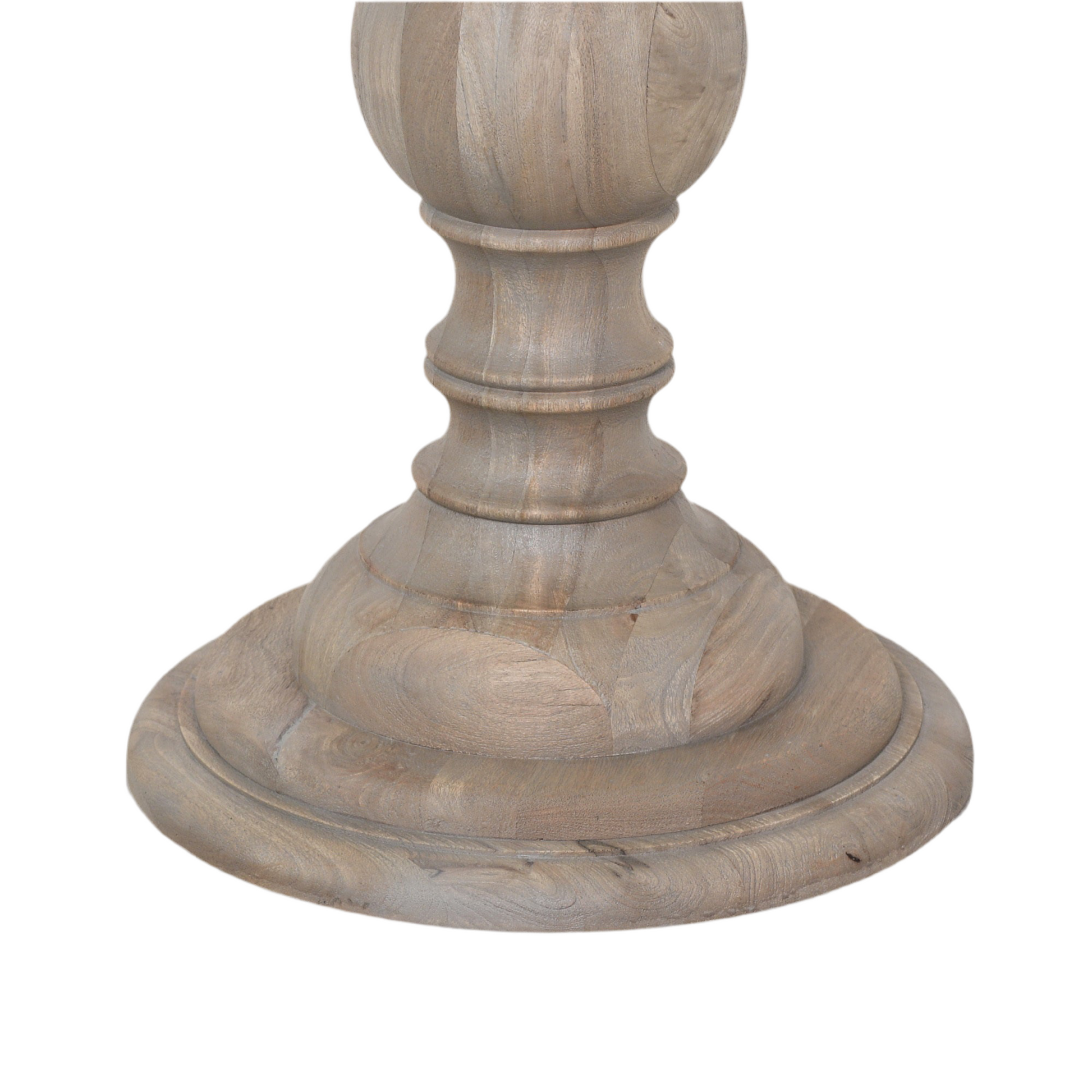 The table’s sculptural pedestal base features intricate hand-carved detailing, lending artisan character and timeless charm to the overall design. The sturdy central column allows for maximum legroom, combining form and function in an elegant silhouette. Every detail reflects craftsmanship and thoughtful design.