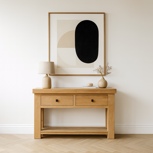 This collection focuses on rich, natural wood tones such as solid oak, mango, walnut, and reclaimed wood. Expect visible grain, warm colouring, and hand-finished textures.