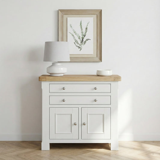 We offer small sideboards in a variety of styles, from classic oak and rustic reclaimed wood to contemporary painted finishes, as well as warm mango wood and rich acacia wood designs, ensuring a perfect fit for any interior.