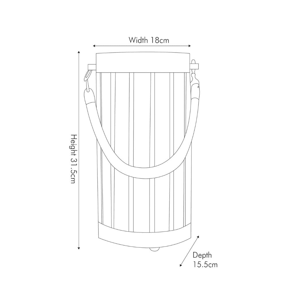 Austell Pine Wood Grey Wash Small Lantern Table Lamp | Slatted Design | Rope Handle | Coastal Style Accent