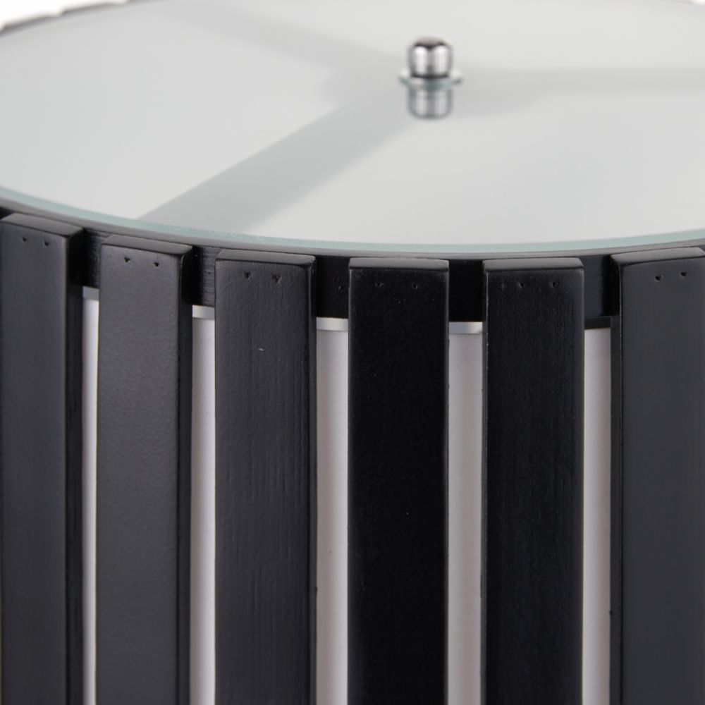 At the centre of the design is a slatted pine wood shade that adds texture and softens the light. The open construction allows for a warm, ambient glow to filter through, creating inviting illumination ideal for evenings or layered lighting schemes. Whether used for atmosphere or as a functional bedside or side table lamp, it brings both form and purpose to your room.