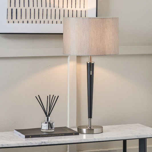 Metal Lowry Brushed Silver and Matt Black Table Lamp