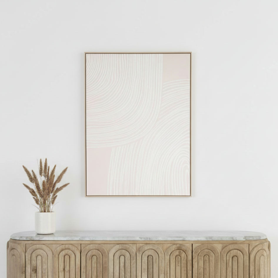 Natural & White Abstract Canvas | Large Wall Art with Wood-Effect Frame